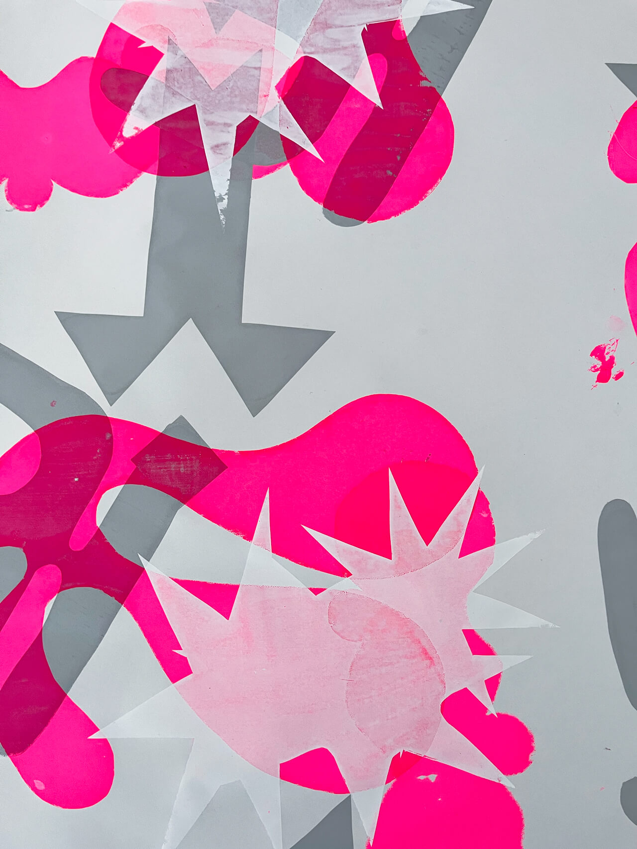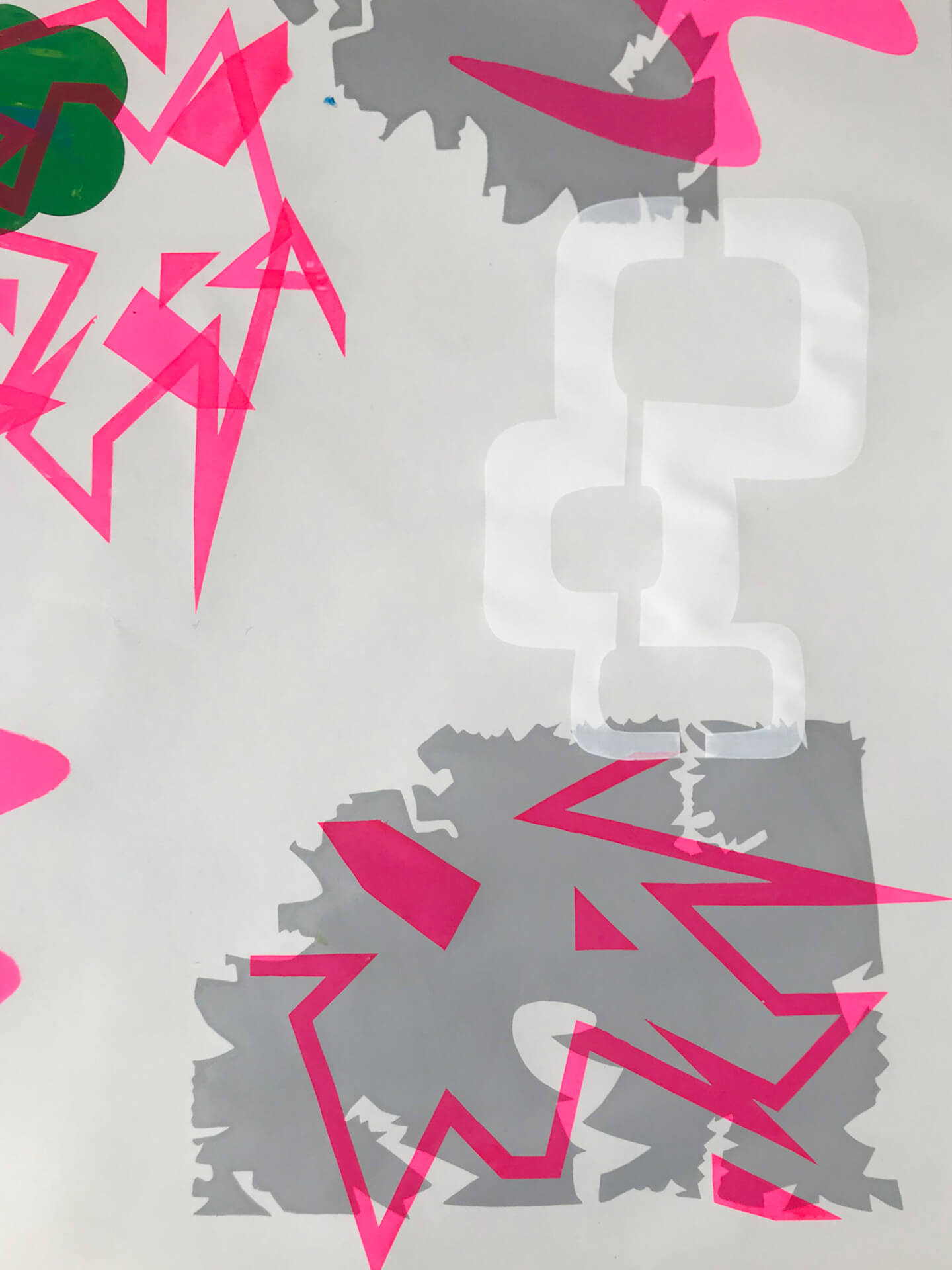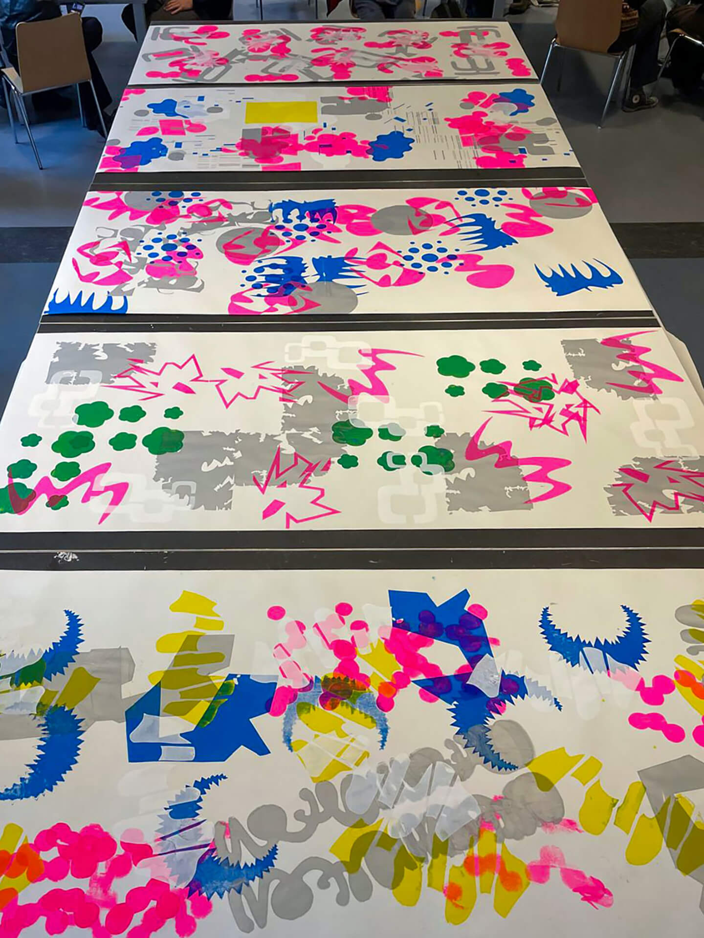 Ausgehend von gestalterischen Kompositionen erforschen wir das Zusammenspiel von Format, Farbe und Form. Dabei entstehen individuelle Gestaltungen zu kontrastierenden Begriffspaaren. Anschließend werden in Zusammenarbeit mit der Siebdruckwerkstatt gemeinsame Kompositionen gedruckt, wobei jede Person einer persönlichen, geheimen Gestaltungsregel folgt.