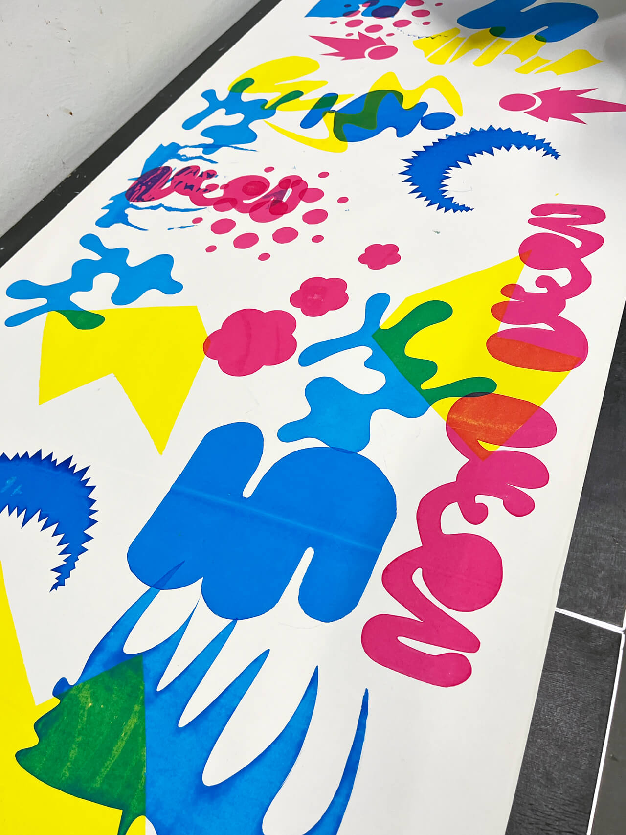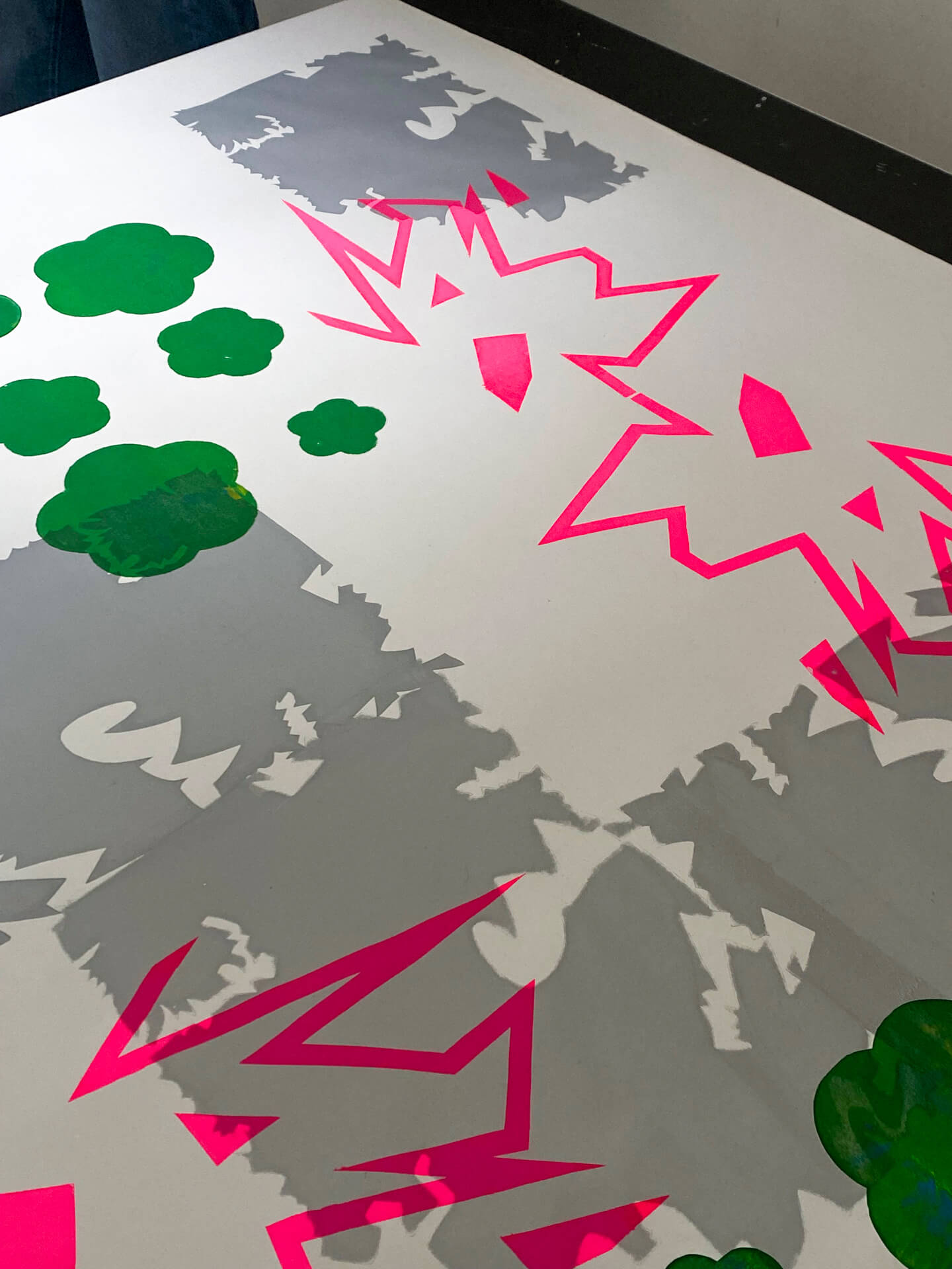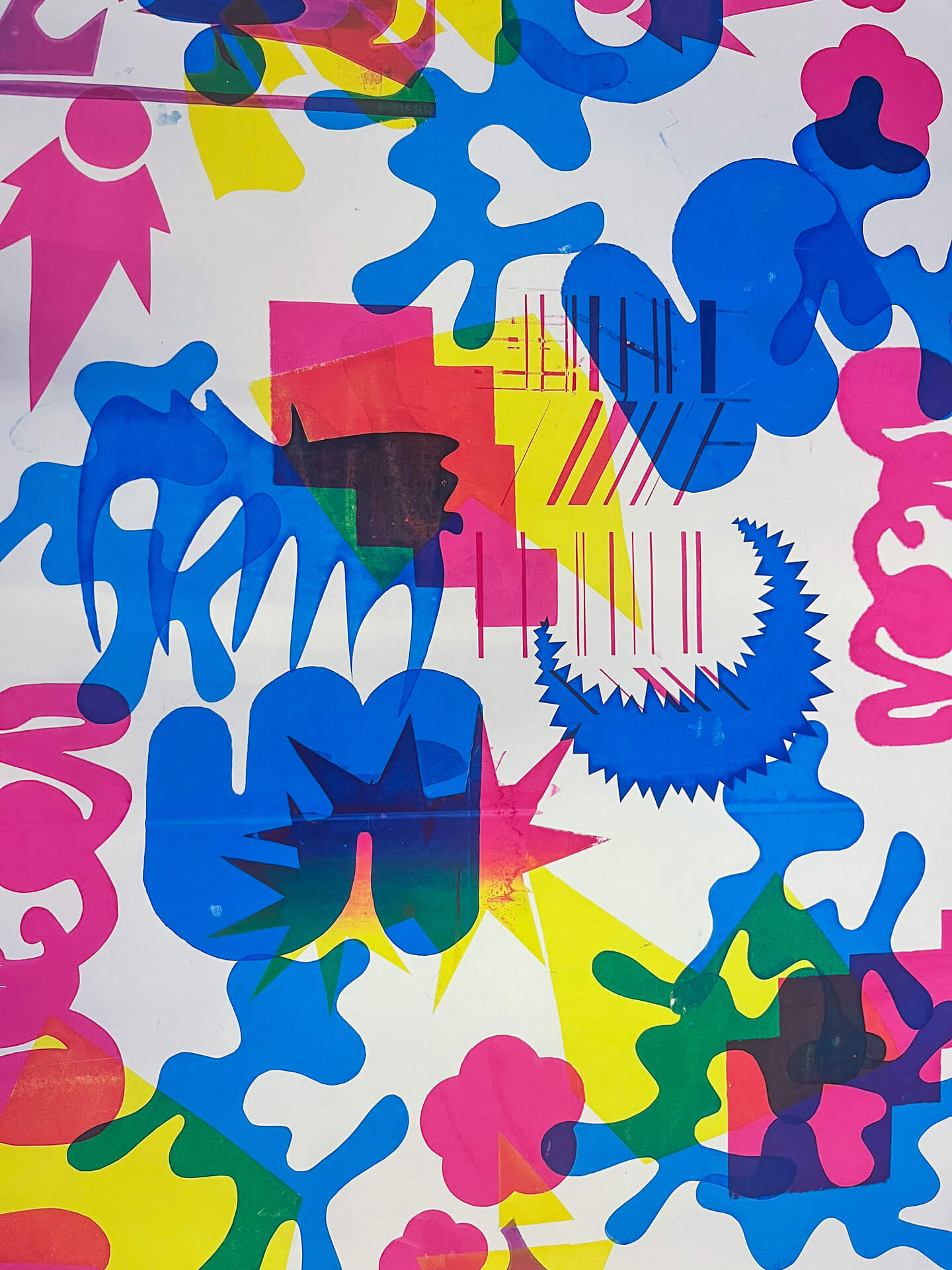 Ausgehend von gestalterischen Kompositionen erforschen wir das Zusammenspiel von Format, Farbe und Form. Dabei entstehen individuelle Gestaltungen zu kontrastierenden Begriffspaaren. Anschließend werden in Zusammenarbeit mit der Siebdruckwerkstatt gemeinsame Kompositionen gedruckt, wobei jede Person einer persönlichen, geheimen Gestaltungsregel folgt.